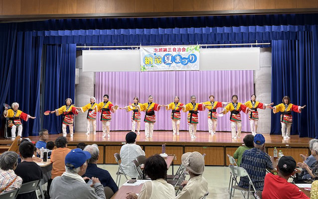 ホールの舞台は、三線クラブ・ウクレレサークル・民謡サークル・ダンスなどプログラムも多彩です。日頃の練習の成果を発揮しています。